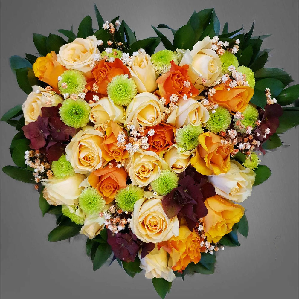 Når noen man er glad i har gått bort er en blomsterhilsen en fin måte og ta avskjed på, og en måte å vise både medfølelse og kjærlighet. Her ser du forslag på blomsterdekorasjoner som vår samarbeidspartner kan produsere. Merk at bildene er i hovedsak illustrasjoner på fargetema og ulike fasonger, og at faktisk sluttprodukt kan variere fra bildene. Enkelte blomster kan være vanskelig for butikken å oppdrive utenfor sesong.
